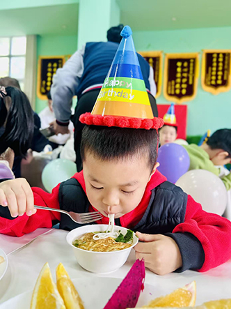 看着小寿星们开心地吃着热气腾腾的面条,教室里满是温暖与幸福的味道。