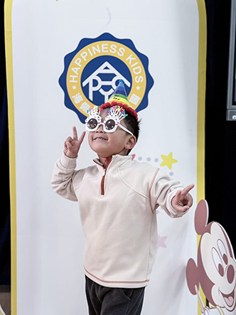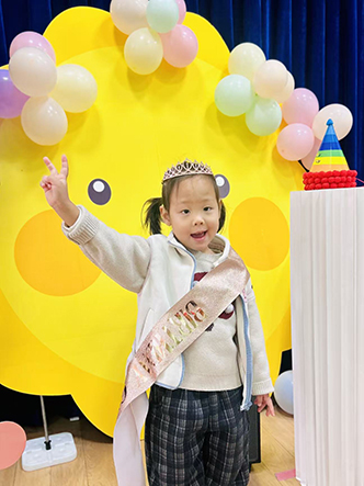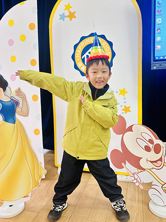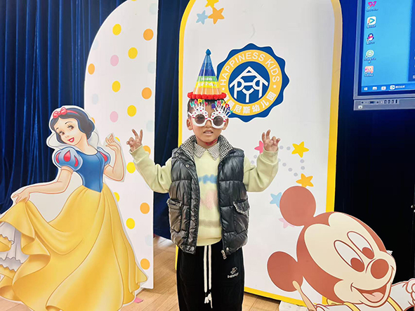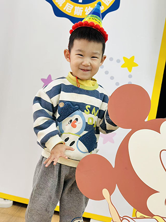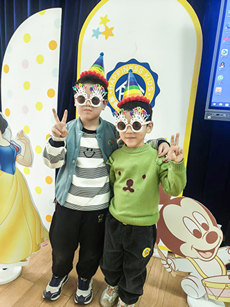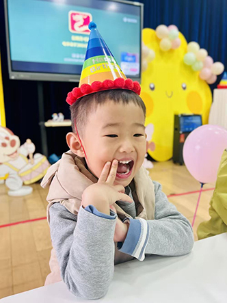 小寿星们戴上可爱的生日帽,在精心布置的生日背景墙前,露出最灿烂的笑容。