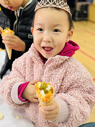 活动现场,我们准备了两种特别的“冰淇淋原料”——金灿灿的红薯泥和白白胖胖的山药泥!