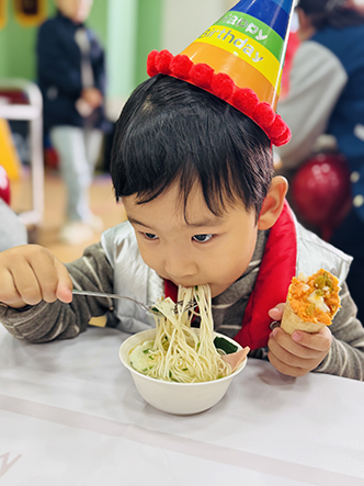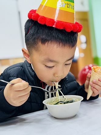 生日会的压轴秘密武器来啦——香喷喷的长寿面!