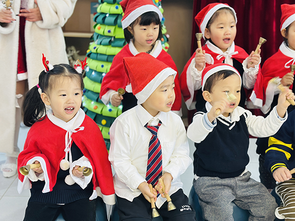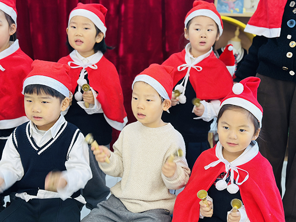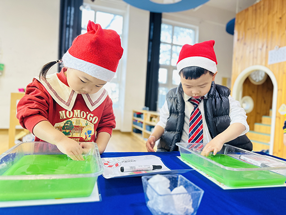 早晨的大厅变成梦幻舞台!一队可爱的“圣诞小歌星”早早站好,