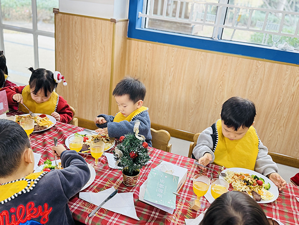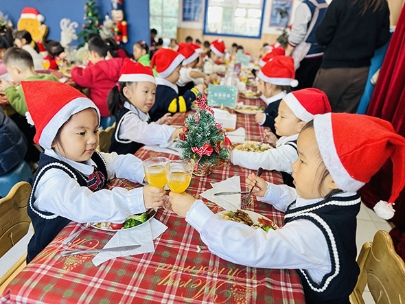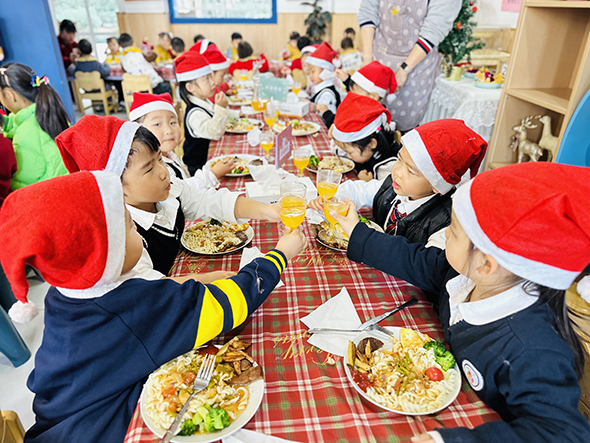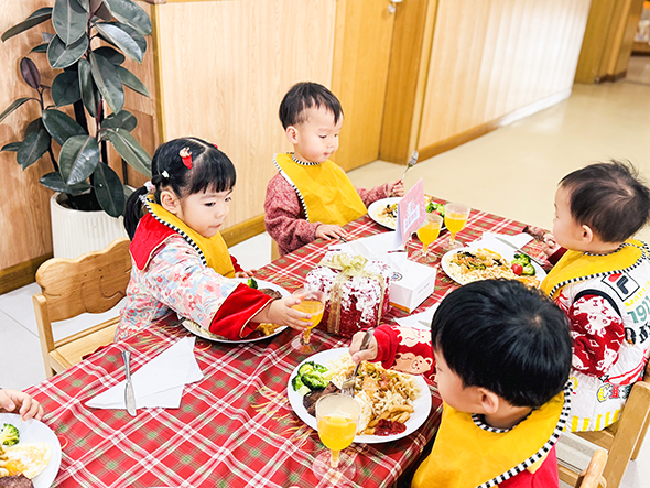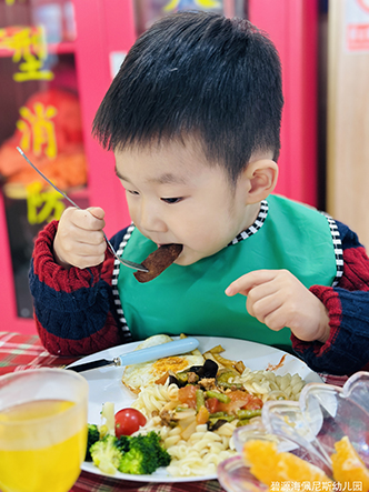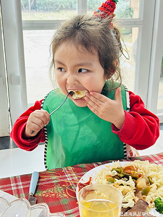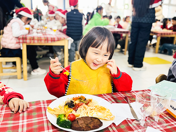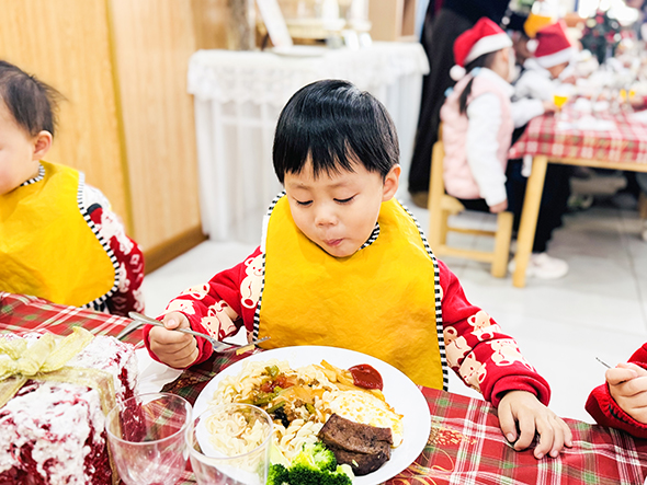 小手拿着刀叉有模有样,每一个宝贝都是最棒的圣诞小绅士、小淑女!